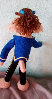 Colocar el pelo y la barba, con un lazo hacerle una coleta. Bordar las cejas, ojos y colmillos.